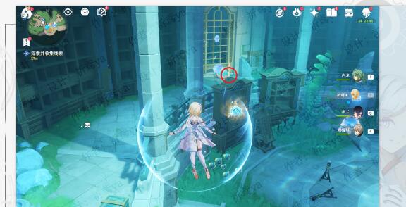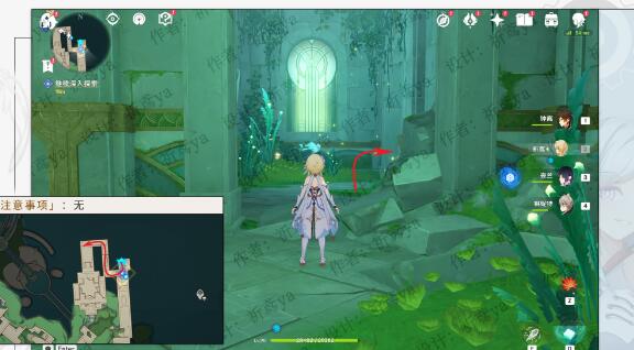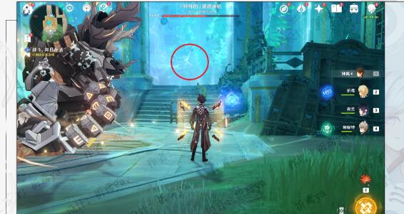 25,击败遗迹重机(可以先打到1次,也可以不打),我们击碎南边的屏障(用普攻A几下就碎了)