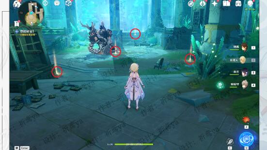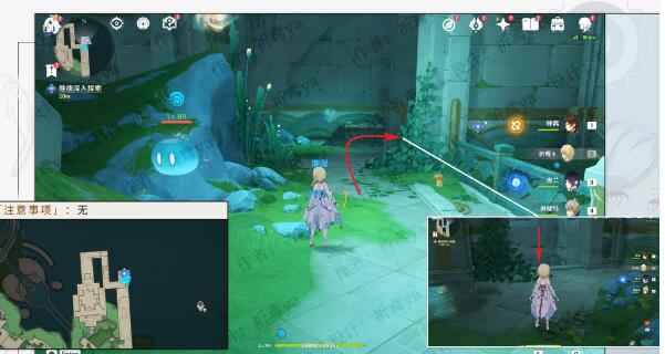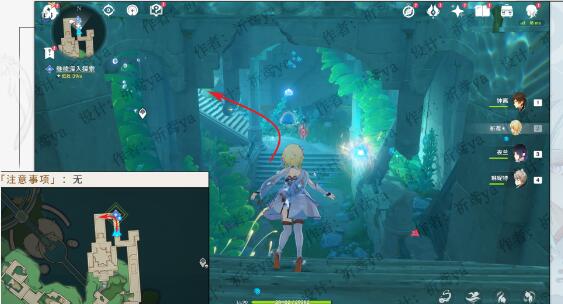 20,右拐,来到道路尽头,下到坑底,启动坑底的机关,使水位上升