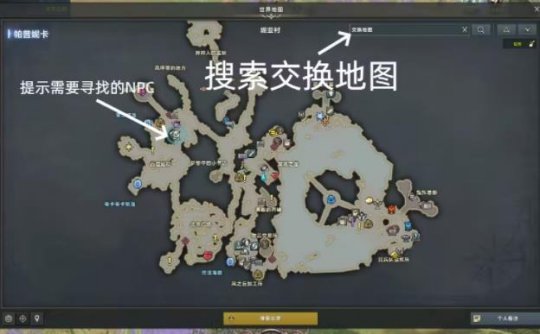 首先我们在地图搜索栏搜索:交换地图 ! 然后找到提示的NPC