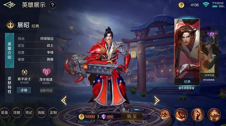 个人感觉展昭比较像王者荣耀里面的凯,技能都十分的强大,展昭的一技能跟凯的一技能比较除了不带回血其他基本一样。展昭的是变成巨猫,不仅可以增加双抗,还会大幅度提升攻击力。