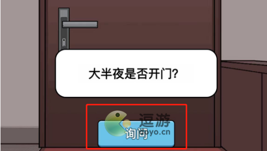 5、敲门声出现,出现选项问是否开门,向左滑动选项位置,出现【询问】选项,点击询问,男朋友出现,成功通关
