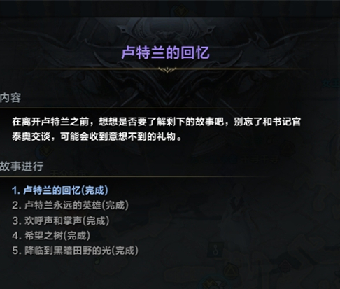 获取方法:在卢特兰城的卢特兰王宫与希里安对话接取,任务初始阶段名为“卢特兰的回忆”,为紫色任务,在跑完卢特兰主线后出现;
