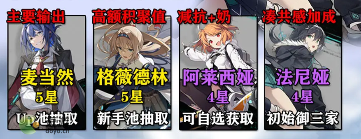1、阵容推荐【雷队】:麦当然+格薇德林+阿莱西娅+任意雷元素角色