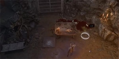 2.继续深入来到木桥处,在桌子上找到一具尸体,然后在尸体上搜索即可找到卓尔皮甲。