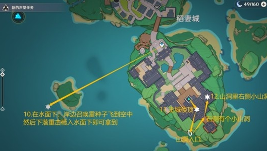 10:在水面下,岸边召唤雷种子飞到空中然后下落重击砸入水面下即可拿到