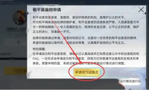 和平精英是一款非常好玩的枪战射击游戏,很多玩家想知道和平精英巡查员怎么获得资格,为了帮助玩家更好的玩这款游戏,小编为玩家带来了和平精英巡查员资格介绍,感兴趣的玩家快来看看吧!
