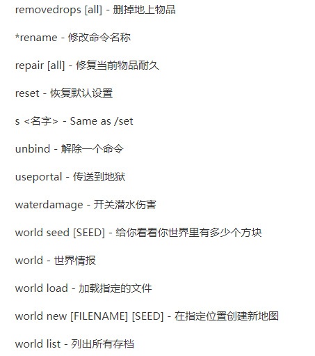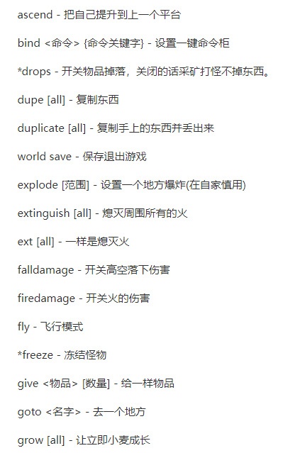 我的世界游戏中,创造指令其实就是创造模式的作弊指令,比较常用的就是飞行模式fly、直接去一个地方goto<名字>、命令列表/帮助help[COMMAND]、传送到地狱useportal、世界情报world,更多指令如下图展示。