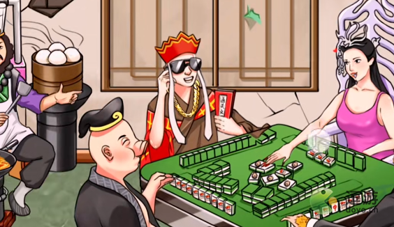 2、八戒手里拿着分家协议,唐僧拿着通关文牒,白骨精正在对唐僧垂涎欲滴,三个人在打麻酱