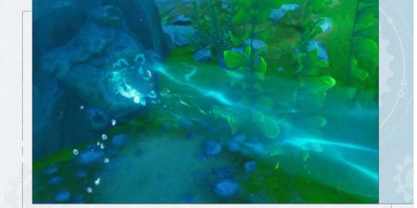 4、高压水流溢口:在枫丹水下的礁石里会喷出高压的水下暗流,旅行者如果身上附有重甲蟹的重甲护盾可以抵挡住不被水流冲走,这种水下暗流也可以组织水流流动。