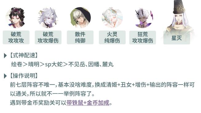 3、从第十层开始(最难一关),我方式神少于对方式神人数才可以对其造成伤害,只需要时刻保持着我方永远比敌方少一个人就好(即我杀一个自己人再杀对面一个人,反复循环直至阴阳师单挑)。