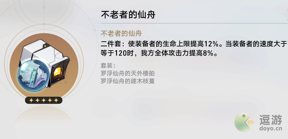 不老者的仙舟(2件套),提高了符玄的生存能力,在速度足够的条件下提高了全队的输出能力。