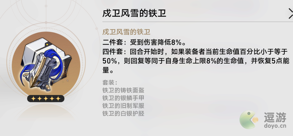 宝命长存的莳者(2件套)+戍卫风雪的铁卫(2件套),为符玄提供了一定的生存能力。