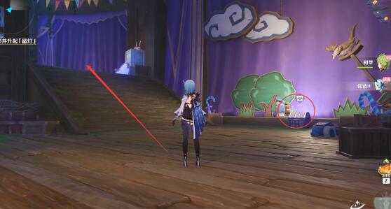 跟随指引右转,过去旋转彩灯②号1次,舞台升起出现1个彩镜;