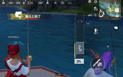 然后玩家等到鱼儿上钩时点击右侧的收杆,此时玩家需要连续点击收杆选项,不要一直按住,点击收杆来控制滑块的位置,让鱼钩一直保持在鱼的位置,同时要坚持到百分比达到100才可以钓到鱼,重点就是玩家整个过程都要保持连续点击收杆键,钓到鱼就会解锁对应的鱼图鉴。