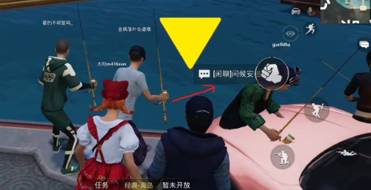 首先和平精英游戏中的鱼竿只有在绿洲世界里面获得,玩家需要去找特定的npc安格林获得,安格林在绿洲世界地图中的湖心岛,玩家来到湖心岛后可以看到一个有黄色图标的NPC,他就是钓鱼的安格林,靠近后选择问候安格林。