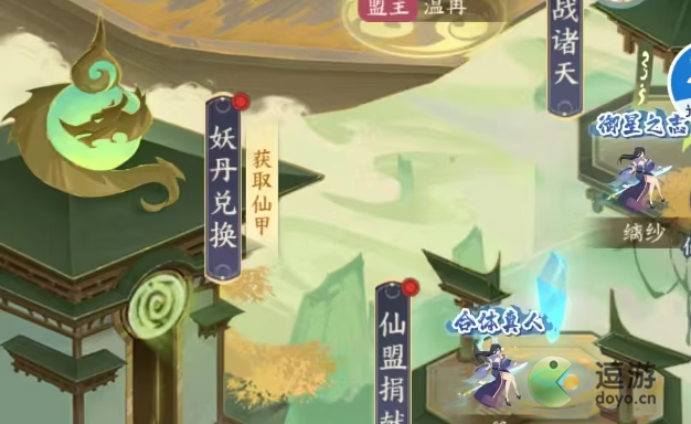 1、位置一:【仙盟】妖丹兑换的房顶位置,会有一层淡淡的金光