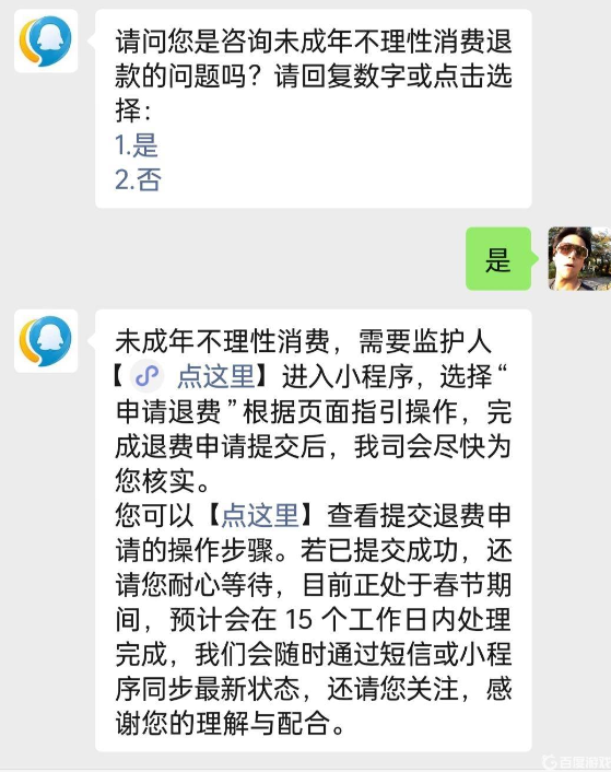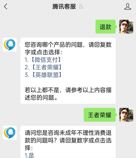 玩家关注腾讯客服公众号,输入退款发送,客服会让玩家选择退款的游戏,选择之后客服就会自动弹出未成年不理性消费退款问题。