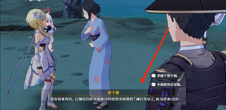 2、然后玩家需要在第二章第一幕[离岛逃离计划]中与n-p-c佟千里对话。