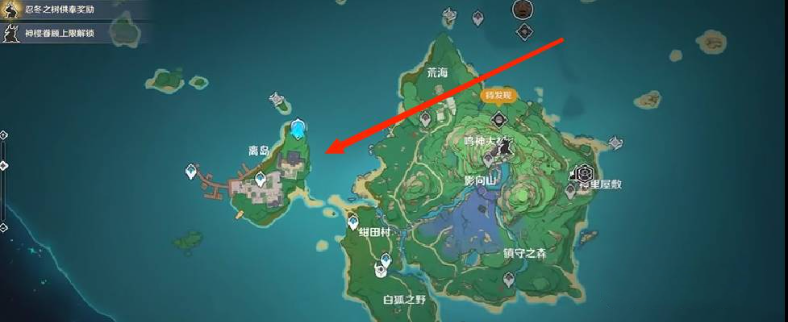 1、开始游戏之后,在离岛神像点下面,位置如下图所示: