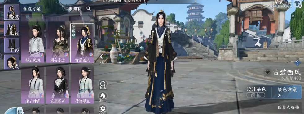 1、解锁古道西风时装需要玩家收集5000点的图鉴点数,玩家可以在【菜单-收藏-足迹-寻幽访胜】中查看当前的点数;