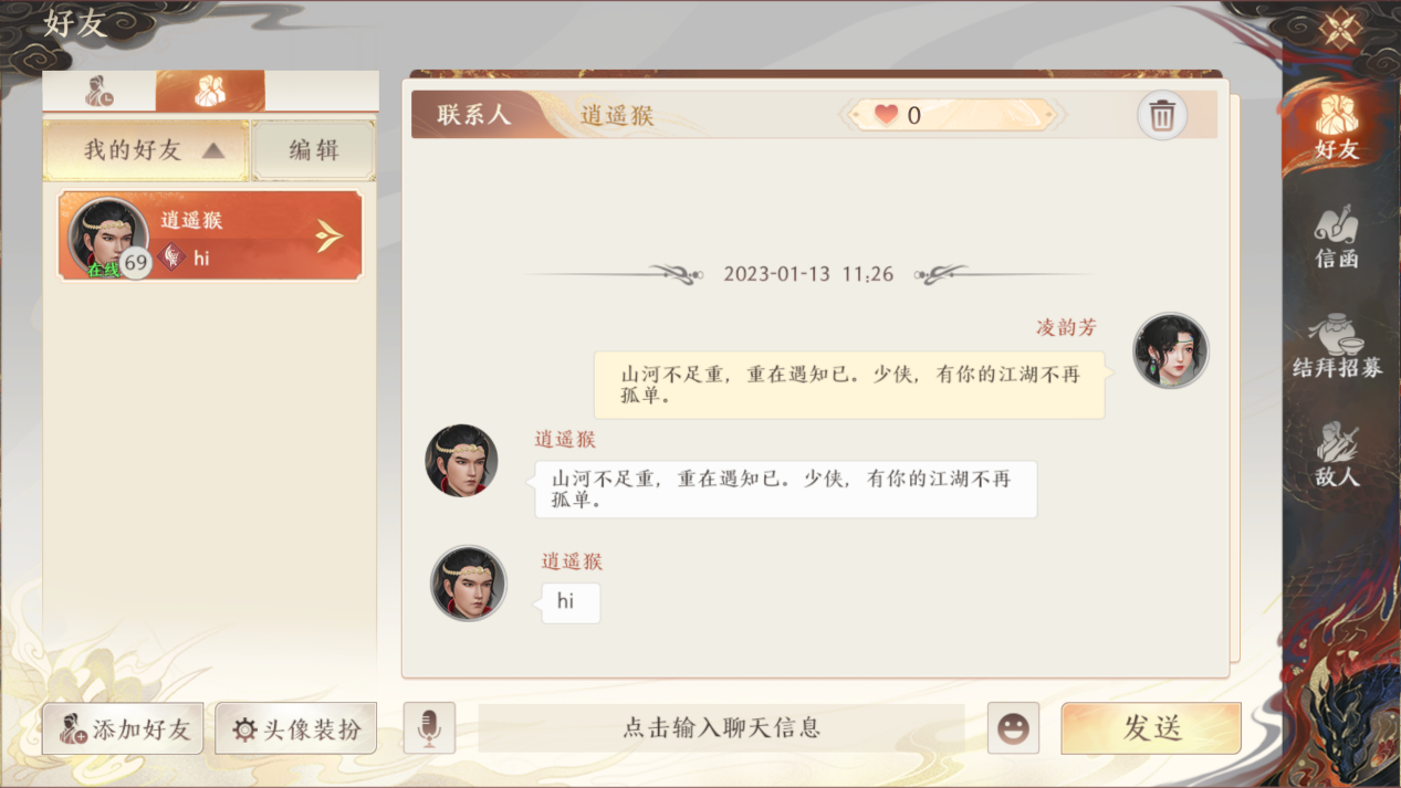 同时少侠还可以点击【头像】-【删除好友】,与其他侠士断绝好友关系,相忘于江湖。