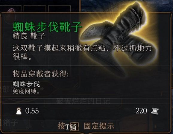 3、蜘蛛步伐靴子作为精良级装备却没有属性上的加成,只有蜘蛛步伐免疫网缚这一个技能。