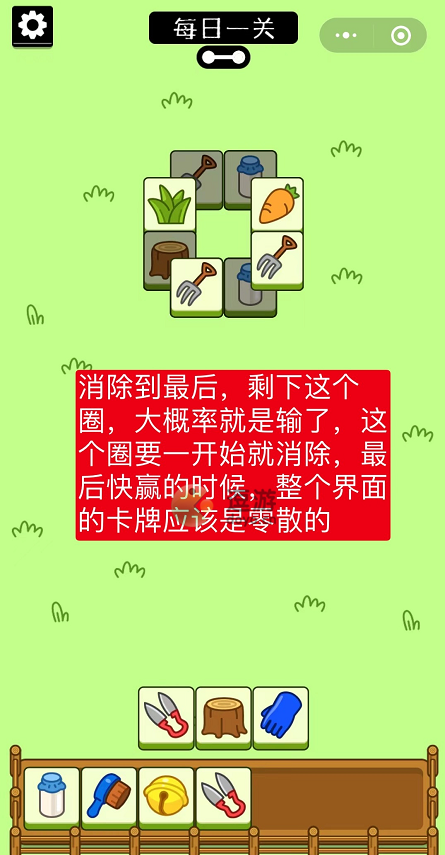 4、反正只要可以不输,提前消除圈内的卡牌,在消除圈的时候,提前看卡牌压着的下面的卡牌。