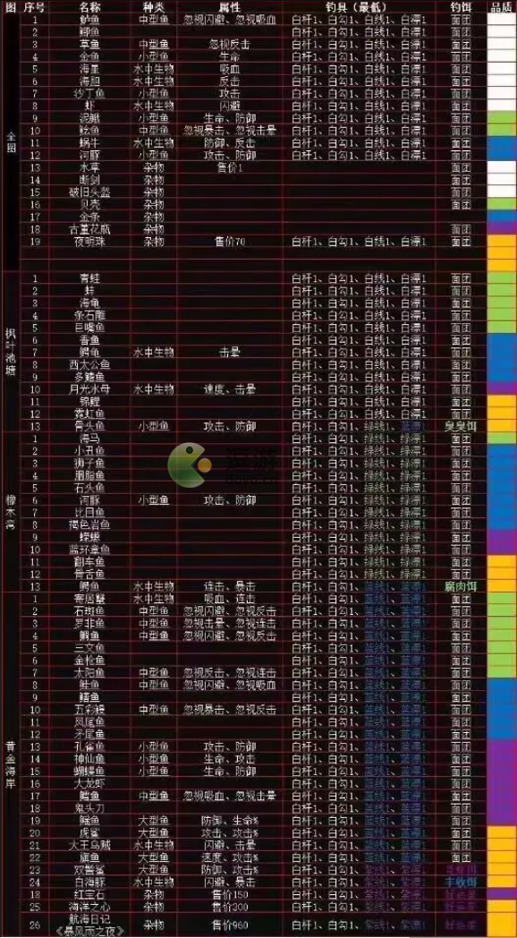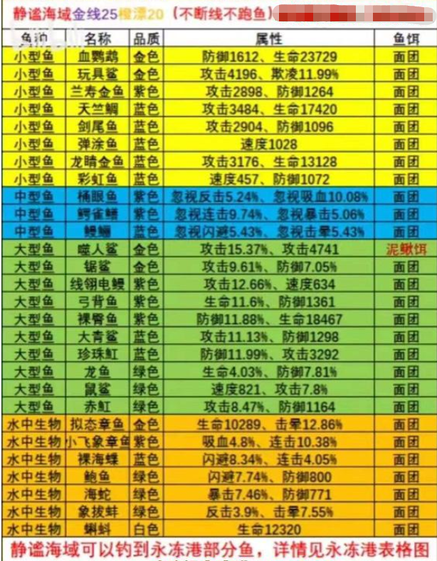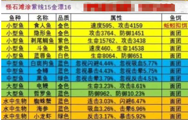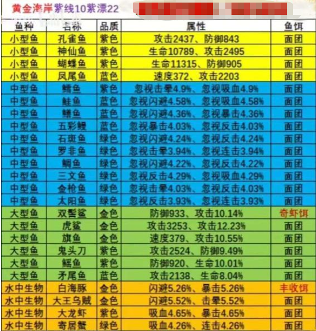 3、鱼饵:骨头鱼-臭臭,鳄鱼-腐肉,双髻鲨-奇虾,推荐鱼线强度85,白海豚-丰收,推荐鱼线强度85,食人鱼-蚯蚓,隐形鱼-蚯蚓