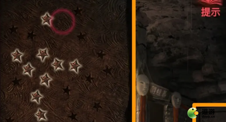 回到房间三,点击最右侧的石门,按照纸条上的线索点亮星星。
