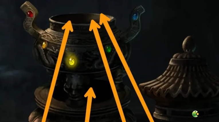 点击房间二右下角的铜炉,将一笔筒水、南墙土、冥陀兰放入其中并盖上盖子,使用蜡烛点燃炉子。