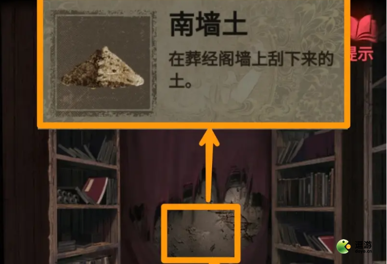来到房间三中的密室,使用锋利铜尺刮墙,获得南墙土。