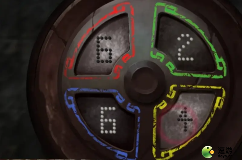 点击房间三下方的圆盘,根据顺序按下“伤景休景死杜”。