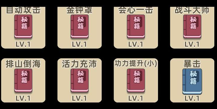 2、修炼的内功心法千篇一律的攻击、血量,过于单调。