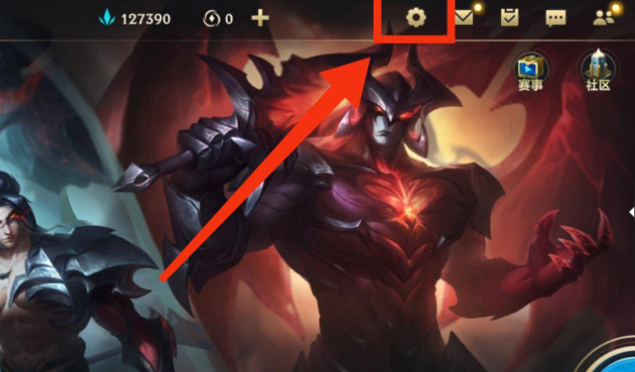 进入英雄联盟手游,在游戏首页点击右上角的”设置“图标。如下图所示: