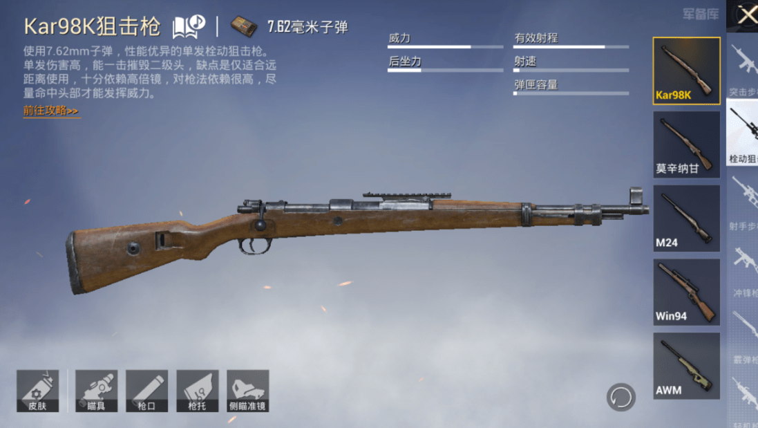 1、98K。是吃鸡的代表枪,但有了更好的替代。