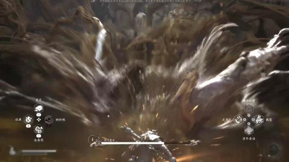 玩家可以根据自身的喜好装备不同的法术来搭配棍法,像笔者在试玩过程中最喜欢使用的是劈棍法蓄力打出破绽后接定身术进行猛攻。
