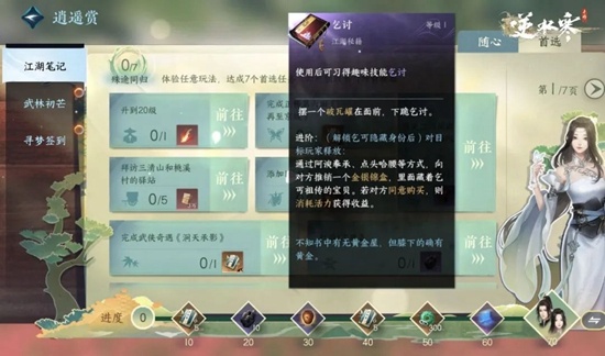 1、得先加入丐帮,接着需要成功乞讨六次以上才能解锁这项技能。