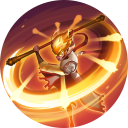点击释放:孙悟空持续舞棒旋转,每0.5秒对周围敌方单位造成物理伤害,命中英雄时获得一个可抵挡伤害值的护盾,持续2秒 蓄力释放:长按蓄力,每0.5秒蓄力时间增加旋转0.5秒时长,每0.5秒造成一次物理伤害 若蓄力超过1秒后,能够额外对其击飞0.75秒 多次命中同一目标时,后续护盾效果仅生效50%,并仅能击飞目标一次 蓄力释放时冷却时间加长为12(每级下降1)秒,若蓄力取消,则返还40%冷却时间 蓄力时减少自身25%移动速度。