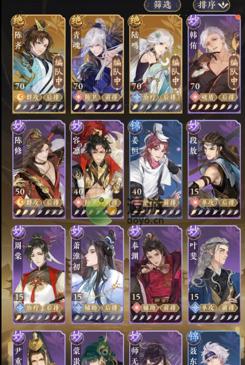①绝:输出-青魂、陈齐、拓跋煜、李睿、吴亥;肉盾-顾昭、赵横;奶妈-陆鸣(强力推荐);加强输出-孙怀瑾、苏洛;加强防御-沈西辞