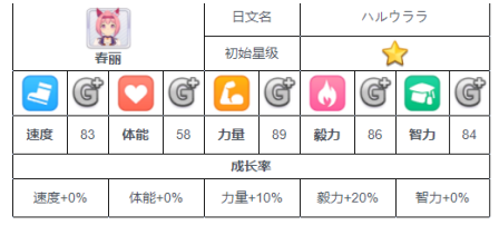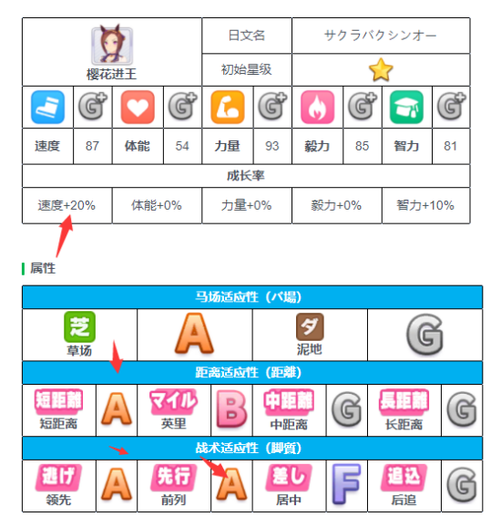 樱花进王:自身不错的模板,对训练的适应性(特别是速度适应性)非常贴合。前期针对短距离比赛可以获得大量粉丝;