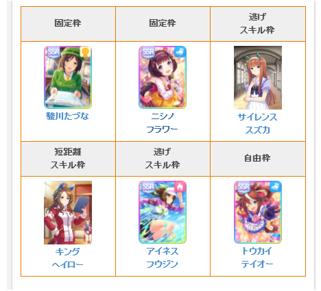 导致育成的目标相对其他马来说更低更容易达成。同样训练难度低,技能学习参考更多插入/冲刺型技能。