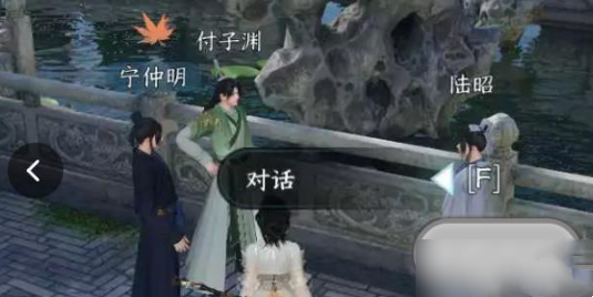 2、到达之后能够看见下面三人正在桥上对话,在他们旁边来回走就能够触发奇遇,接下来就可以按照他们各自的需求来进行合理的对话,结束对话就完成任务。