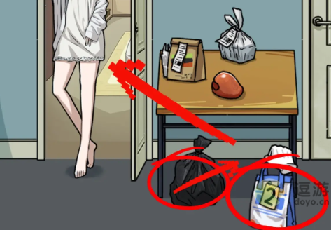 5、用地上的木槌敲击木鱼,开门后将外卖递给女生,再把垃圾袋移动到手里,就可以获得好评了
