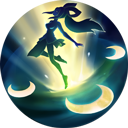 嫦娥将圆月刃投向目标地点,对路径上的所有敌人造成法术伤害,圆月刃会在目标地点停留3秒,嫦娥3秒内再次释放该技能瞬移至圆月刃的位置处并对周围敌人造成法术伤害并减少40.0%移动速度持续2秒。