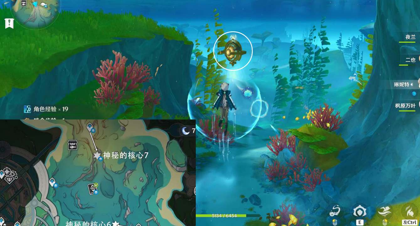 2、水下区域的神秘的核心收集位置如下图所示: