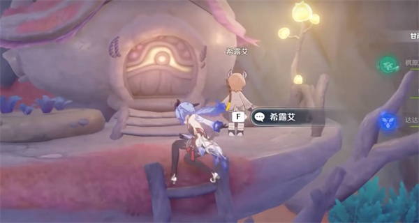 2;然后我们像前面走,在右侧的平台上面我们能看到有一个希露艾npc,我们上去对话;