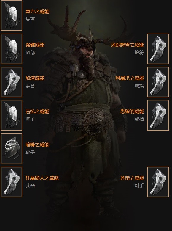雕文(按先后排序):狼人,尖牙和利爪,灾星,护卫,追踪者,灵力