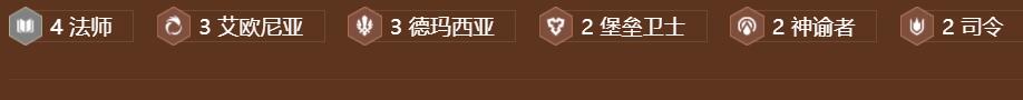 羁绊:4法师,3艾欧,3德玛,2堡垒,2神谕,2司令