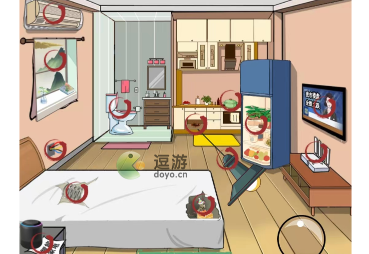 1、汉字找茬王昂贵房租需要想办法降低房租,首先点击智能音箱三次