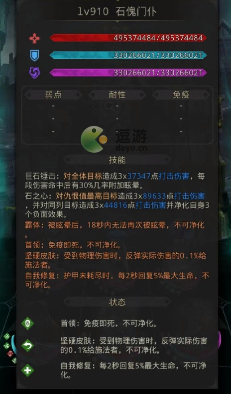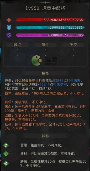BOSS双怪都能眩晕,优先击杀左侧英灵,英灵这次被动增加我们承伤30%,很容易暴毙。推荐带上壁垒眩晕错开BOSS攻击间隔+致盲,战争护甲奶,冰法致盲杖。